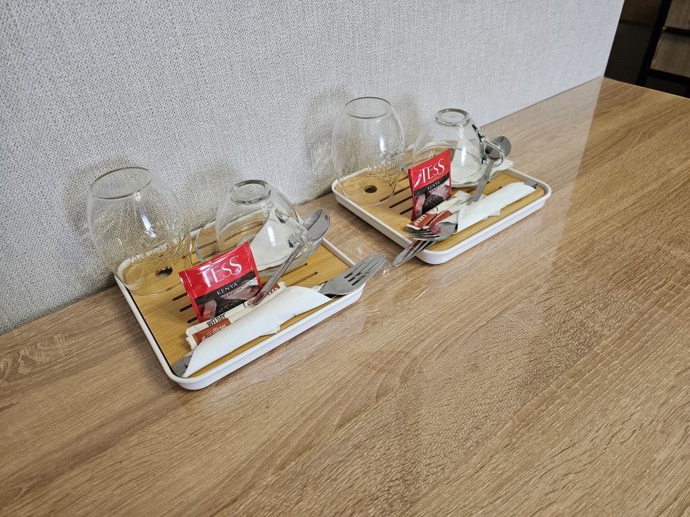 Номер с современной мебелью состоит из одной комнаты, санузла и прихожей. В номере имеются: журнальный столик, цветной телевизор с ЖК экраном, шкаф, мини-холодильник, посуда; удобный санузел с душевой кабиной. Для удобства гостей в комнате гигиены стационарный фен и косметические принадлежности (ароматное мыло, шампунь и кондиционер для волос, туалетная бумага, губка для обуви, набор швейных принадлежностей и др.).